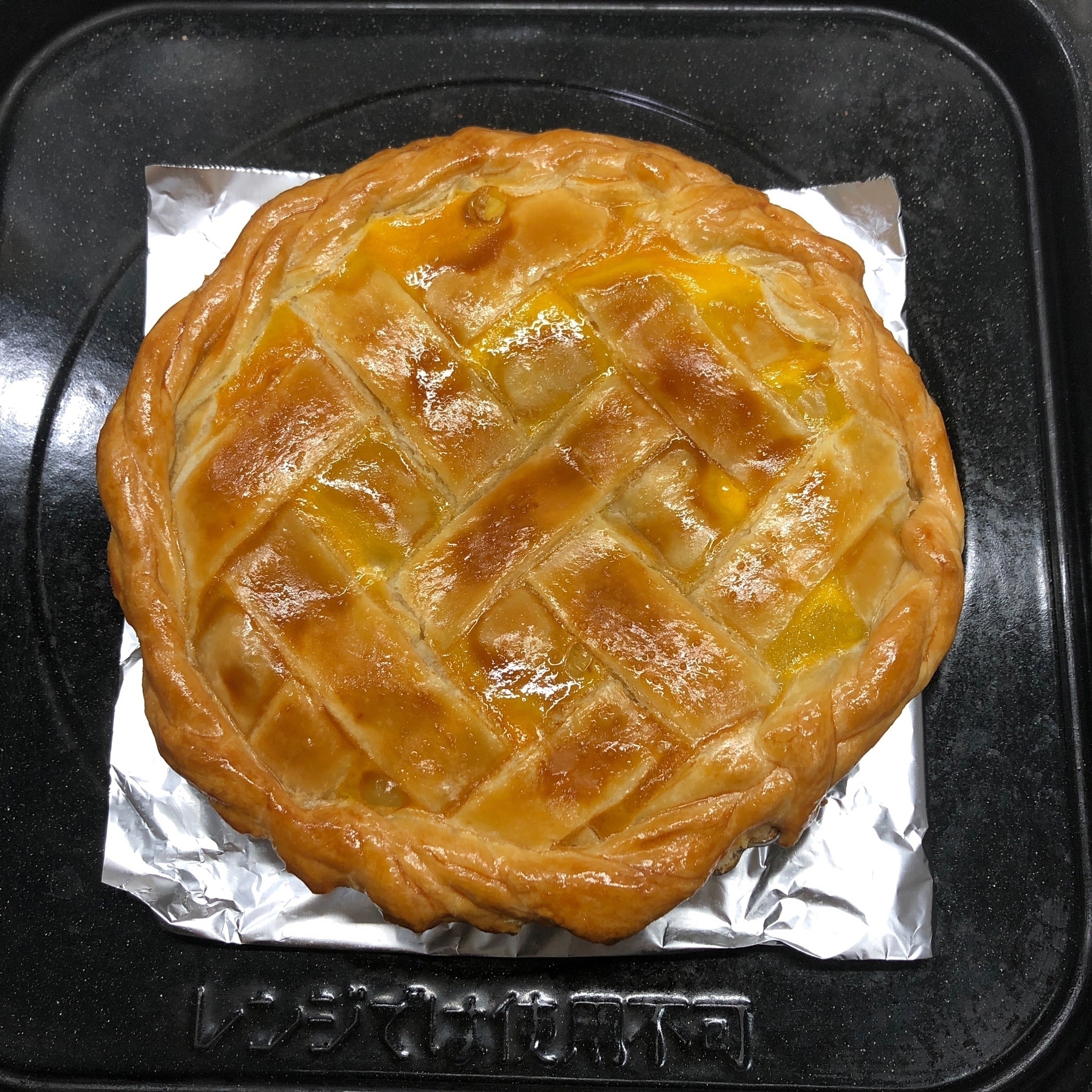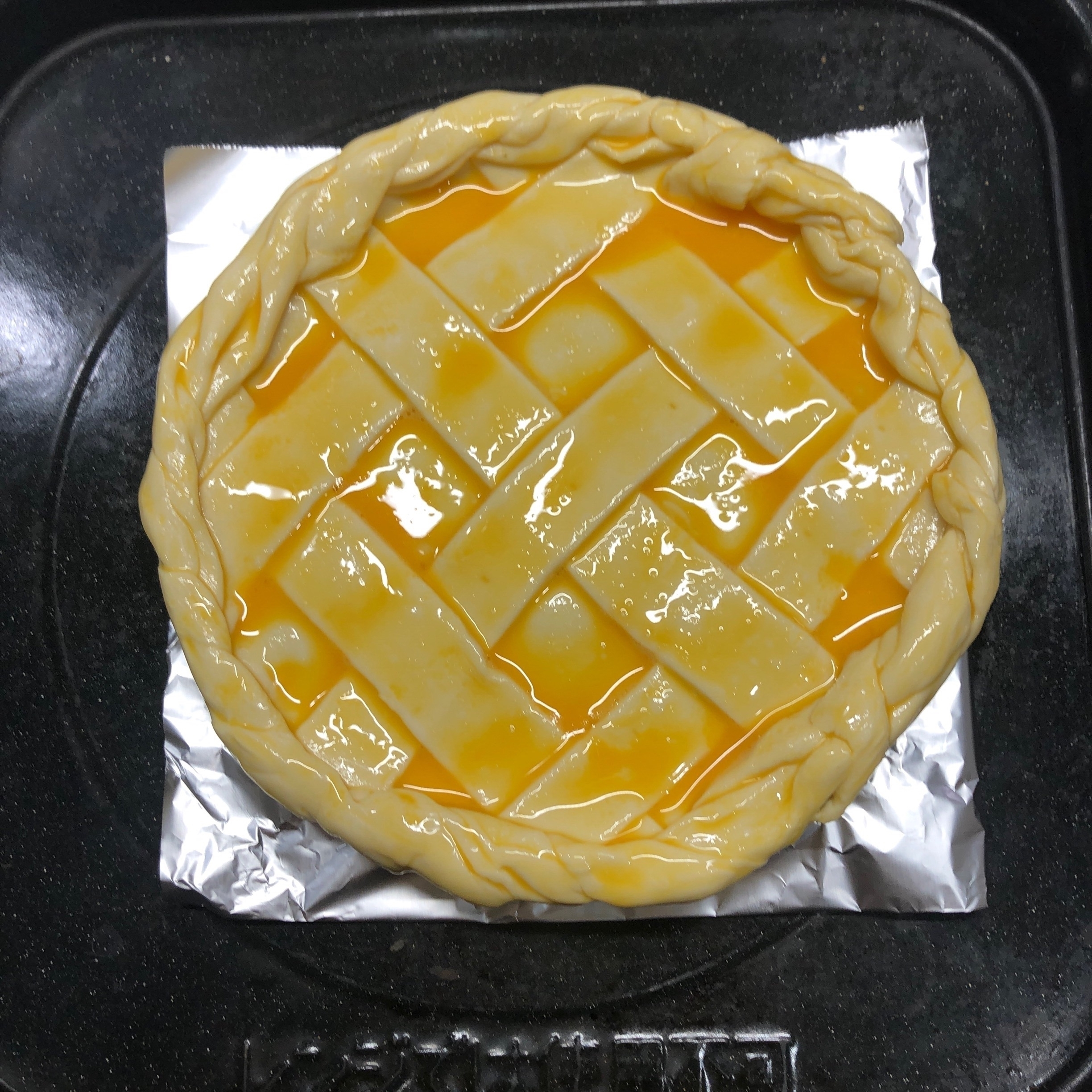 さらに10分ほど経つとレモンパイの表面が焦げてくるので様子を見てアルミホイルをかぶせる。