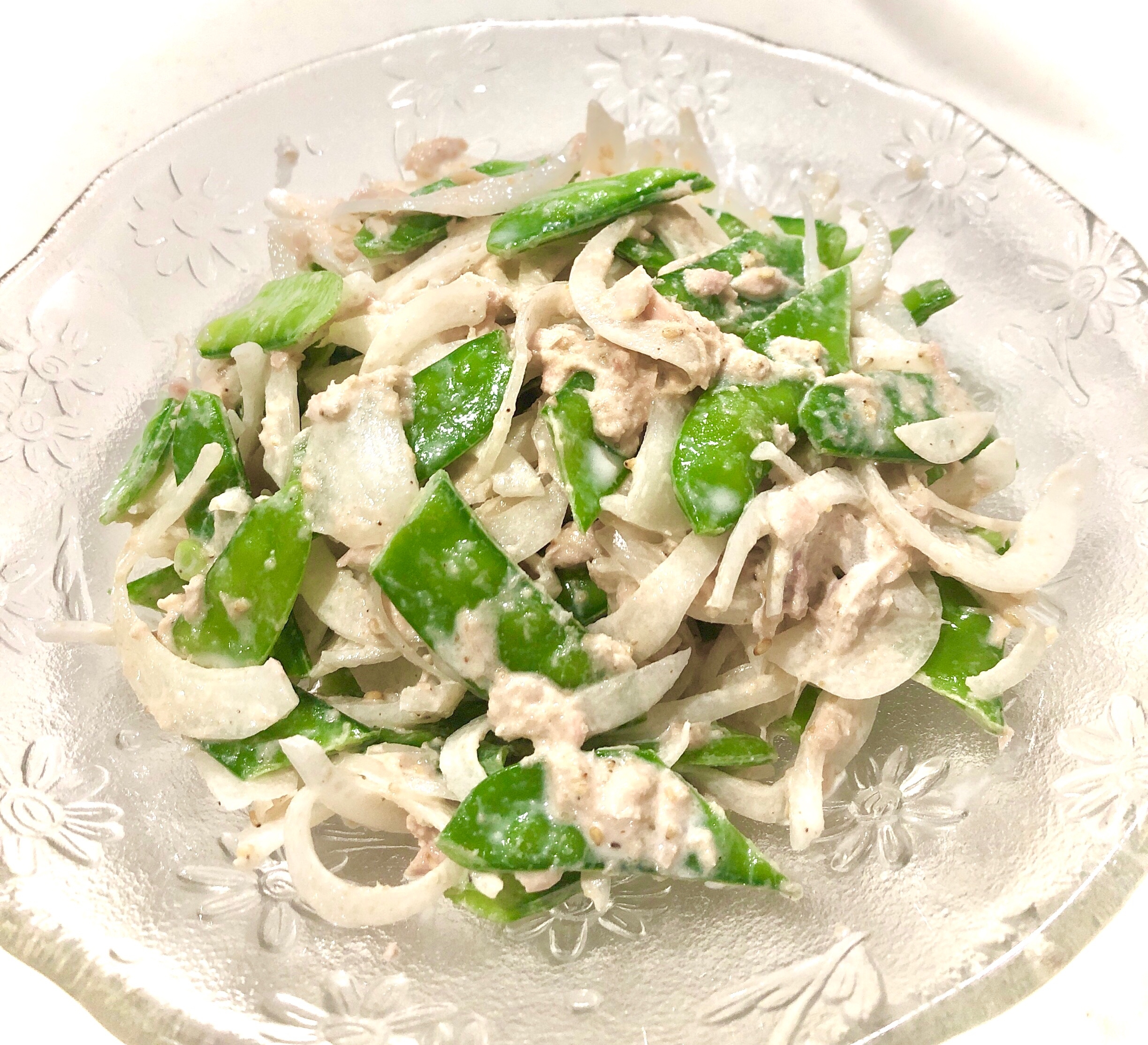 絹さやと玉ねぎのツナマヨサラダ レシピ・作り方