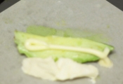 包む時は平らになるように包むと揚げ焼きがしやすいです。 お好みでマヨネーズを少々絞って包みます。 オイルを塗って、オーブンロースターで両面を塗ることも出来ます。