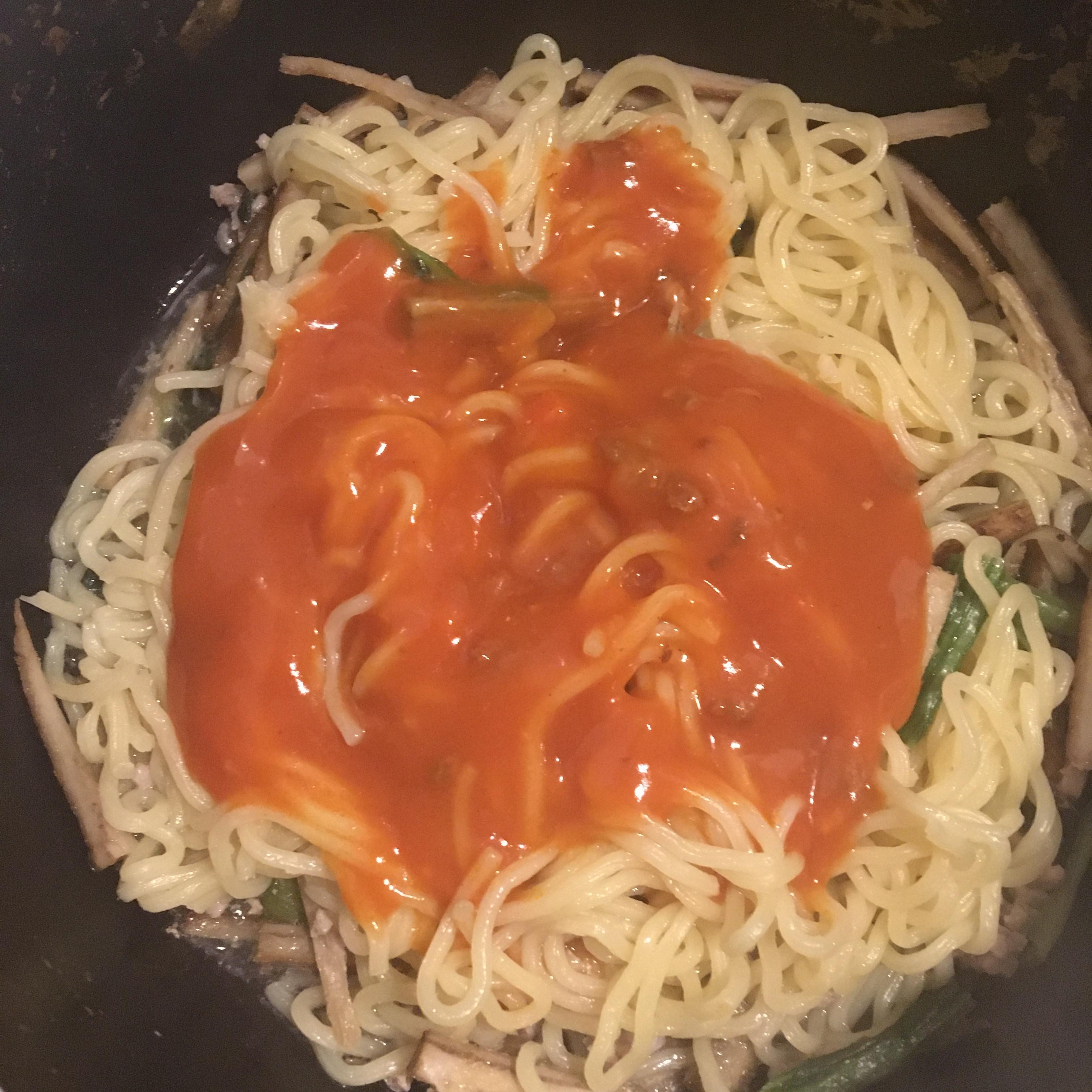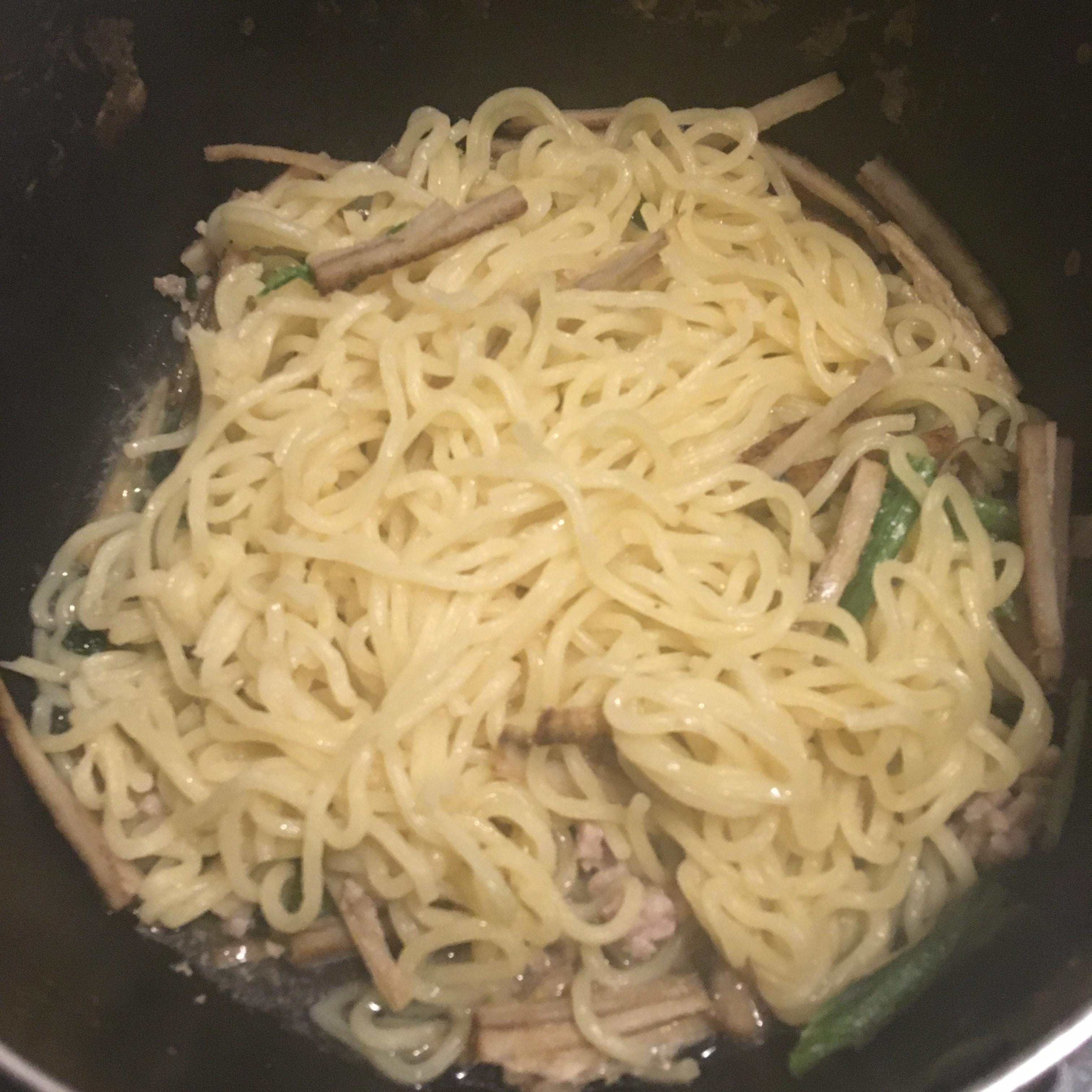 焼きそばの麺を入れてほぐし、1分煮ます。