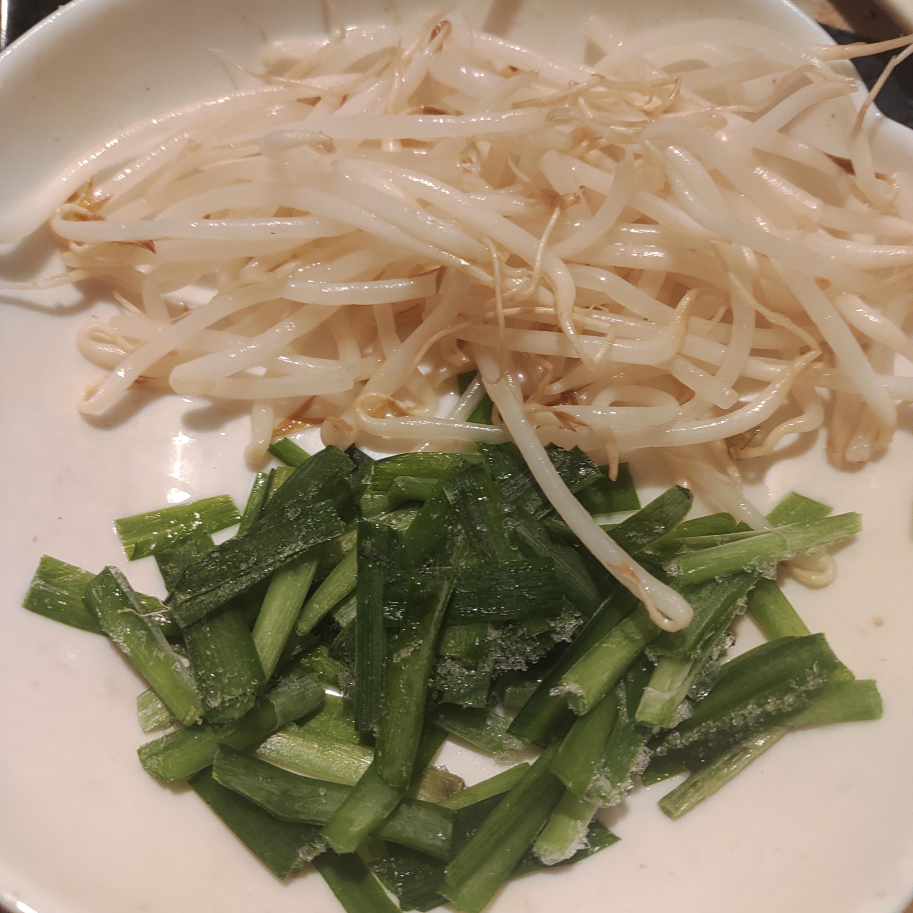 にら,しいたけ、もやし、ねぎ、中華そば レシピ・作り方