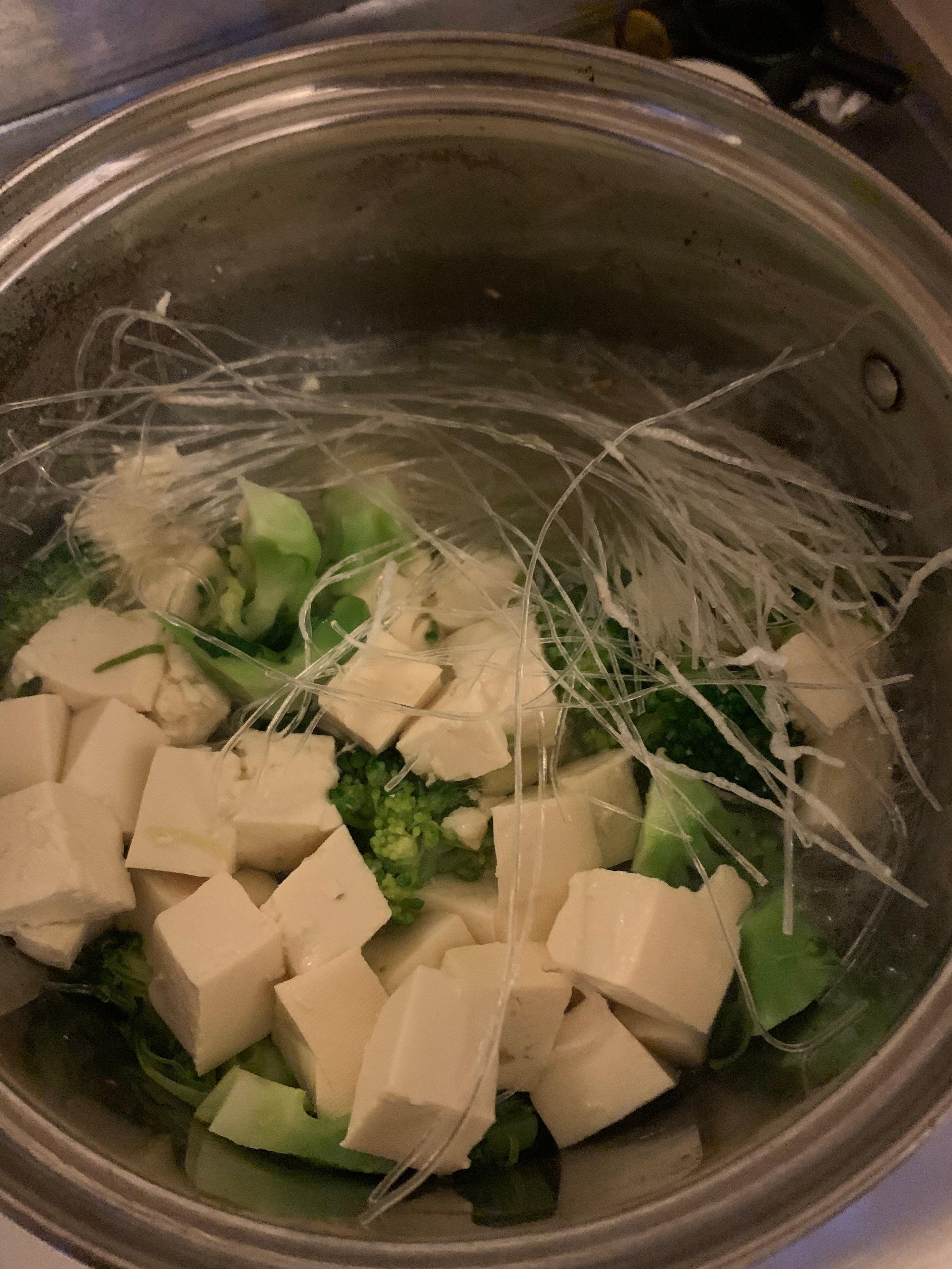 沸騰したら弱火〜中火にし、具材をよけ隙間をあけ、はるさめをいれる。