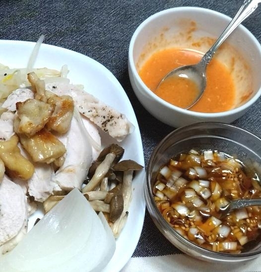 茹で鶏に2種のタレを添えて レシピ・作り方