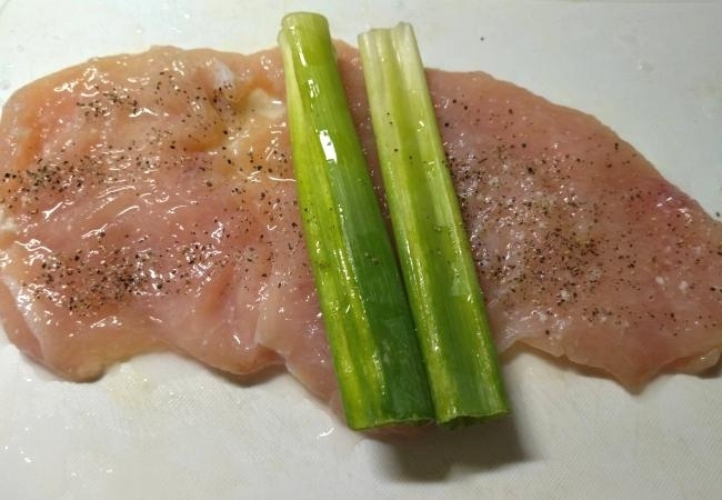 長ねぎの青い部分を芯に巻いて調理用加熱OKのタコ糸でしっかり結ぶ。