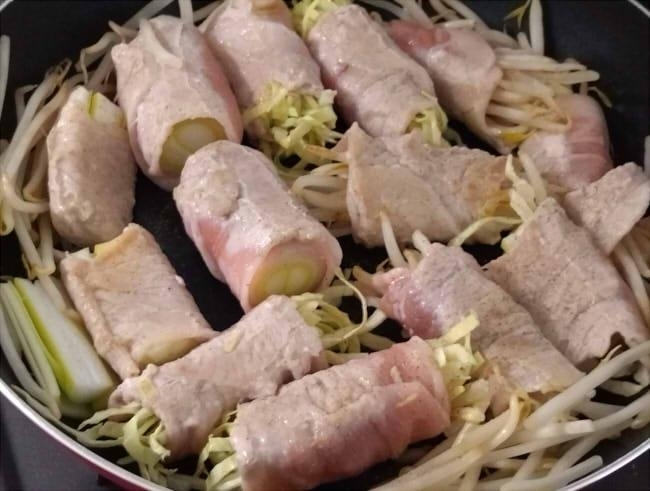 長ネギは歯ごたえを残そうとそのまま豚肉で巻きましたが、火が通りにくい&食べにくいので細切りにした方が良かったかも。