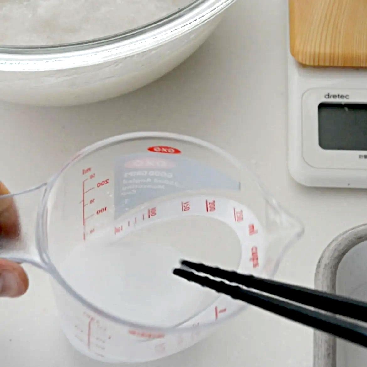 残りの水を4~5回に分けて入れ、その都度よく混ぜる。